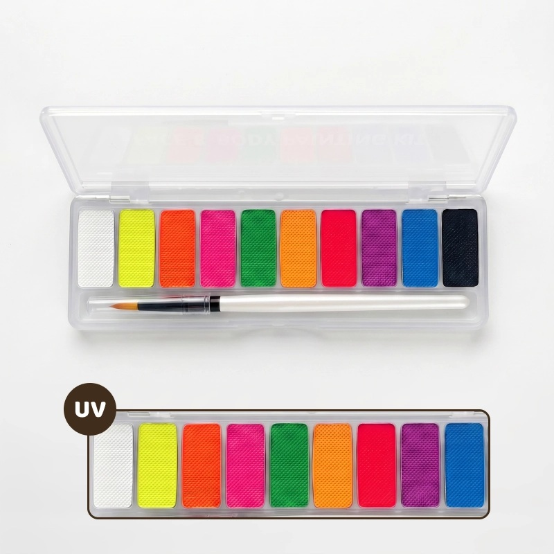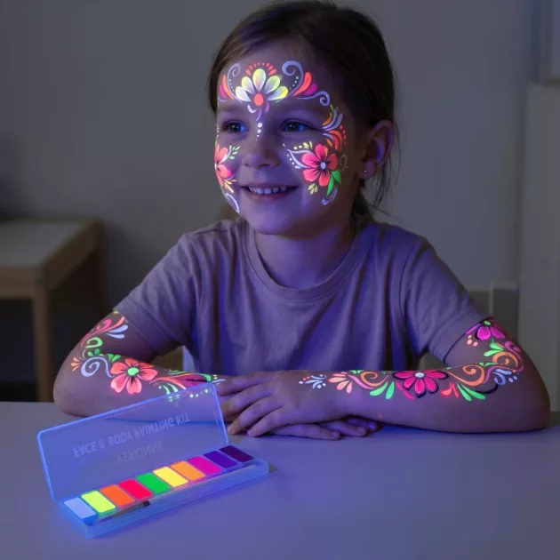 Usé el set neón para pintar máscaras de superhéroes a los niños. Bajo la luz negra parecían estrellas de cómic y quitarlo solo llevó unas pocas pasadas.