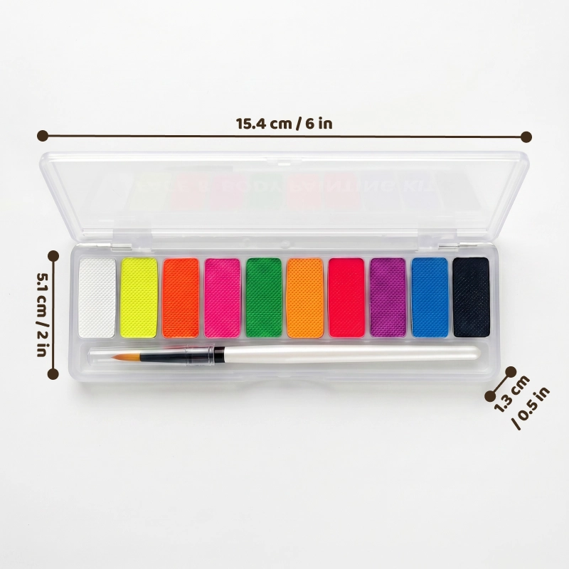 Usé la paleta en el cumpleaños de mi hijo. Los niños se cubrieron brazos y caras con diseños, y todo se quitó rápido antes de dormir, sin enrojecimiento.