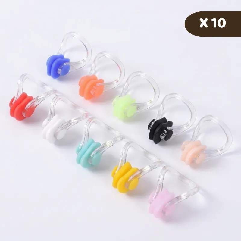 Gran valor - Diez pinzas reutilizables cubren las sesiones escolares, clubes, fiestas y viajes. Los materiales duraderos resisten el uso regular en piscinas cloradas, ahorrando dinero en reemplazos frecuentes.