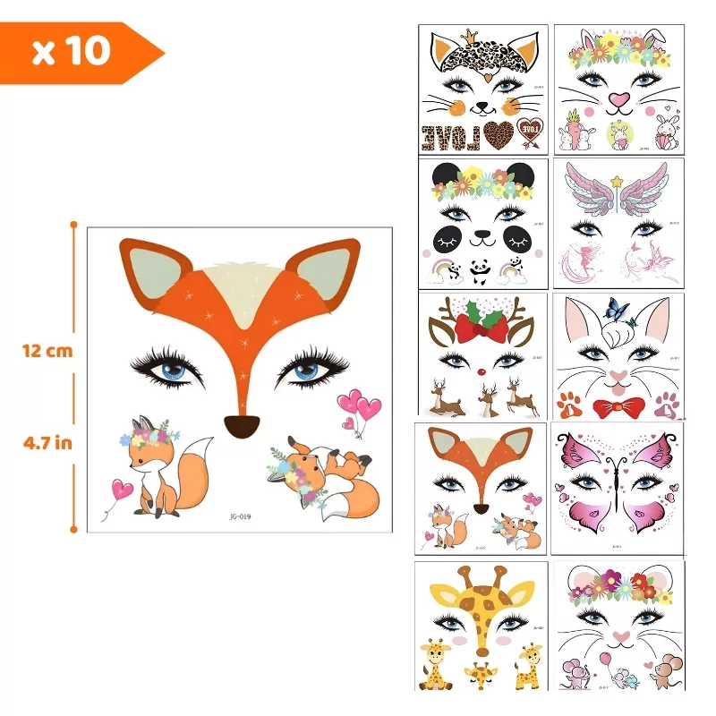 Set de 10 tatuajes temporales para rostro infantiles