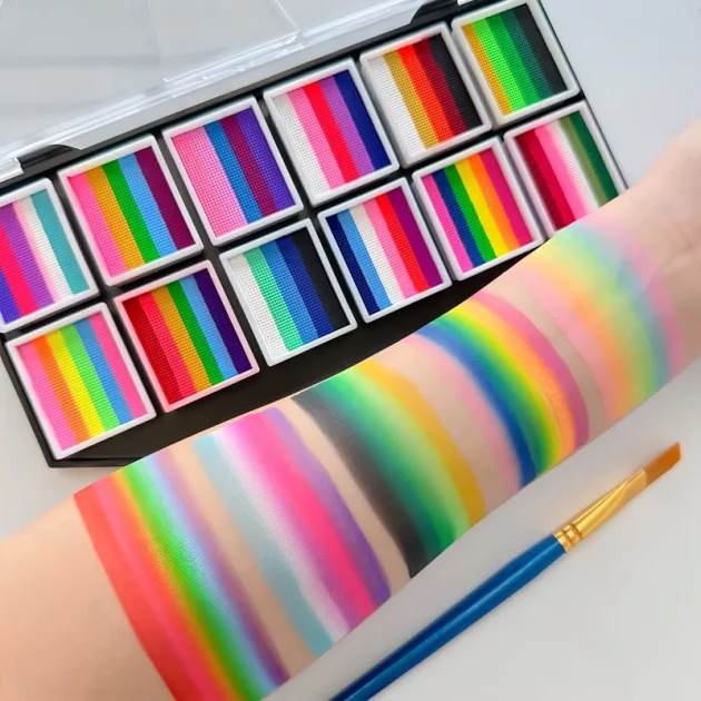 ¡Tantos colores en una cajita! Perfecto para jugar a ser tigres o hadas. Fácil de quitar antes de dormir.