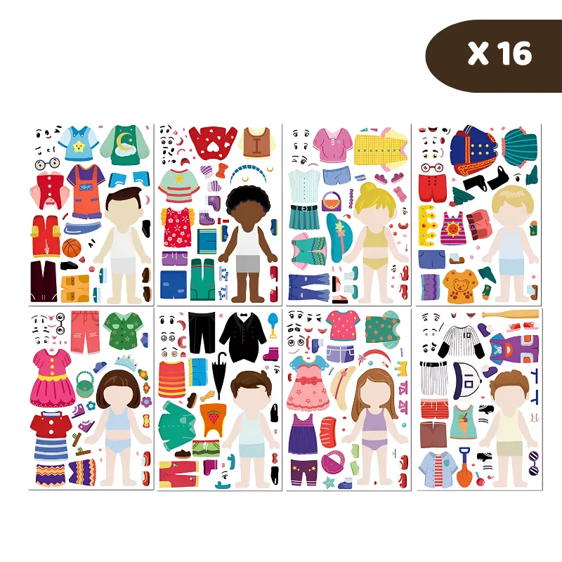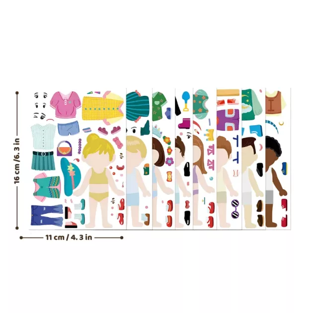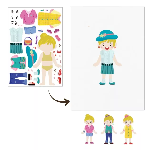 ¡A mi hija encanta mezclar todos los atuendos y caras graciosas! Las pegatinas se despegan fácilmente y no dejan en la mesa ni en las manos.