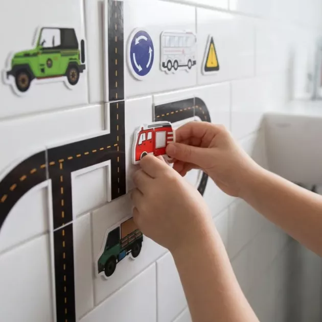 Haz de cada baño una aventura divertida con emocionantes pegatinas para azulejos de baño. Vehículos creativos, carreteras y señales se adhieren fácilmente a los azulejos, despertando historias infinitas. Los niños disfrutan construyendo su propia ciudad mientras tú te relajas, sabiendo que la hora del baño está libre de desorden.