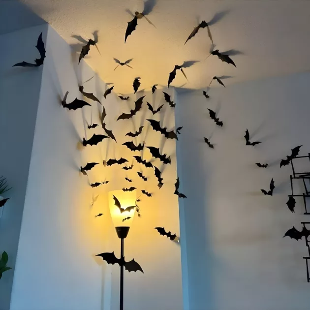 Decorar con estos murciélagos fue fácil y divertido. Hicimos que la sala pareciera una casa embrujada y nada se quedó pegado en la pared después.