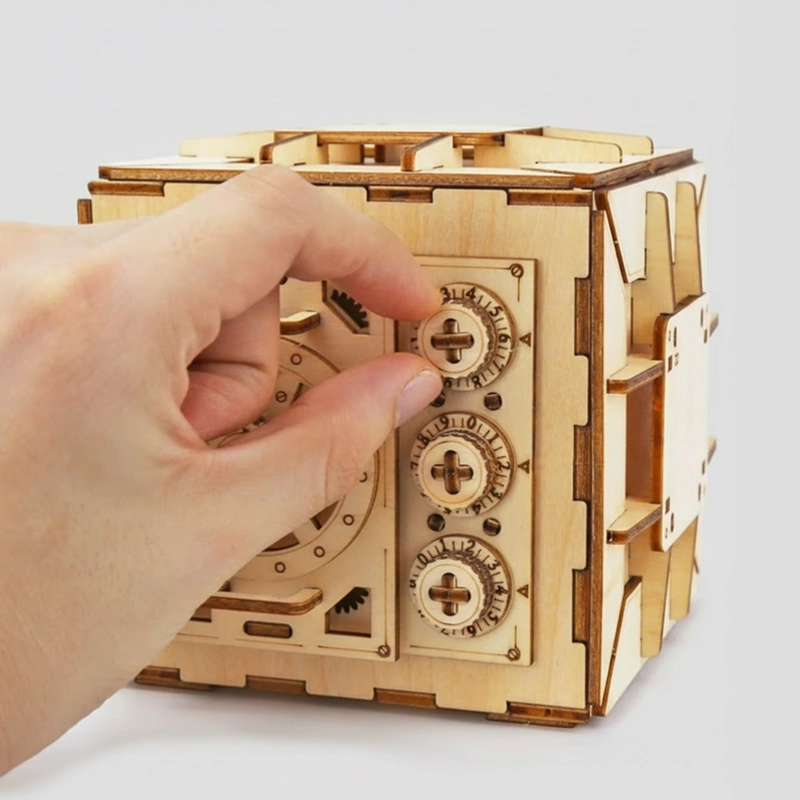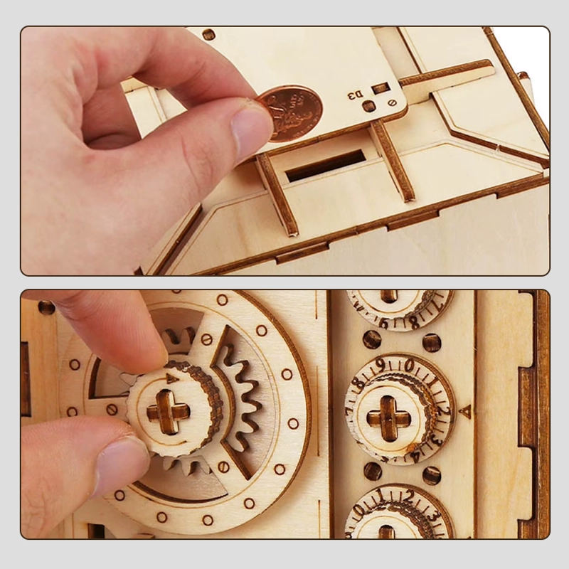 Me encantó construir esta caja de rompecabezas única. Me hizo pensar, y terminarla fue increíble. Ahora todas mis monedas están adentro, seguras y protegidas.