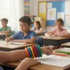 En el último recreo, mi amiga me dejó probar su pulsera elástica. Era suave y blanda, perfecta para calmarse.