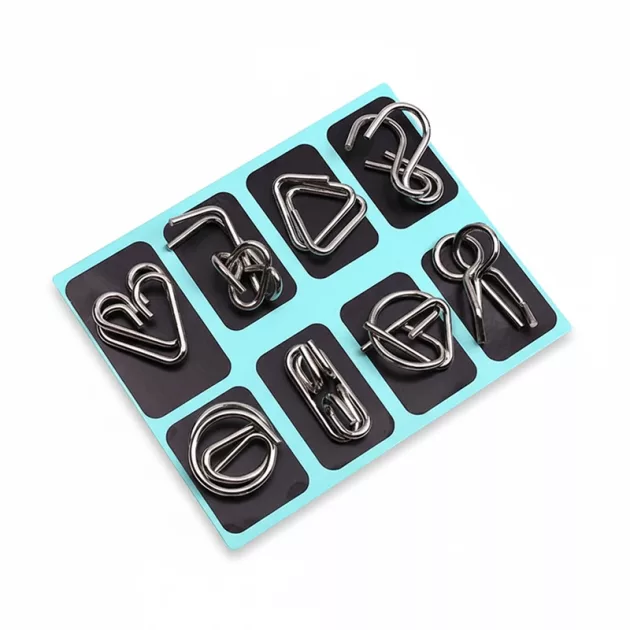 8 piezas Rompecabezas Metálico de Alambre Desbloqueable para Ejercitar la Mente