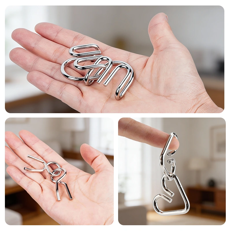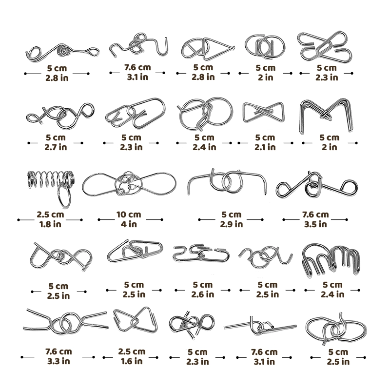 ¡A mi hija le encantan estos acertijos! Realmente la hacen pensar y la mantienen concentrada durante mucho tiempo. Muy contenta con estos rompecabezas de alambre.