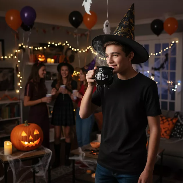 Ahora todas las noches de juegos familiares tienen un toque de bruja. ¡Usamos la taza para snacks, bebidas o incluso piezas de juegos!