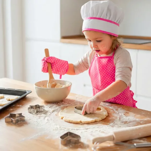 A mi hija le encanta usar el gorro de chef para hornear galletas conmigo. Los colores son brillantes y le queda perfecto. ¡Horas de diversión cocinando de mentira!