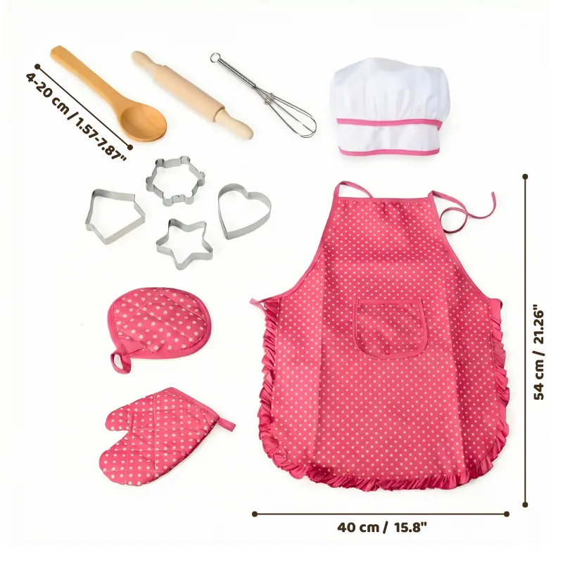 Usamos el conjunto para una fiesta de cumpleaños y todos los niños querían probárselo. El delantal es justo de su tamaño. Creamos grandes recuerdos.