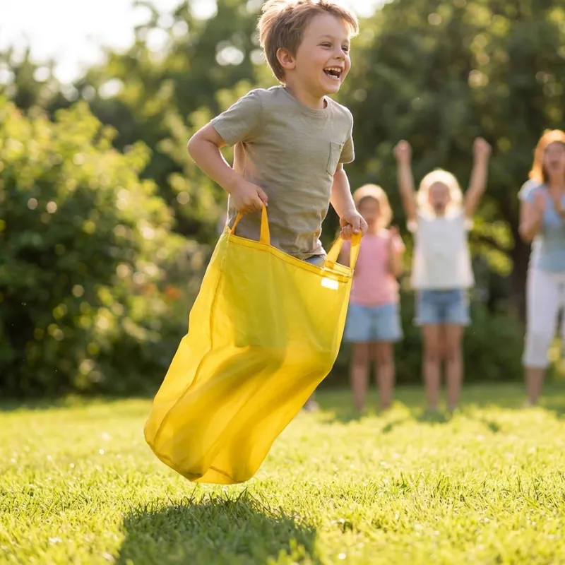 Este saco convirtió nuestro patio trasero sencillo en un mini día deportivo. Los niños practicaron saltos, contaron vueltas y aprendieron a esperar el silbato antes de salir corriendo.