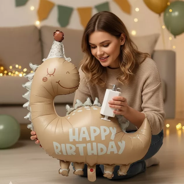 Decorar la habitación fue facilísimo. ¡El globo de dinosaurio era tan lindo y duró todo el día!