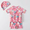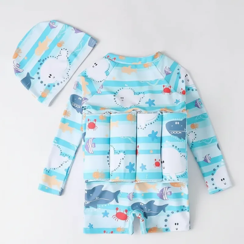 Traje de baño de flotación con gorro y lindo dibujo para niños