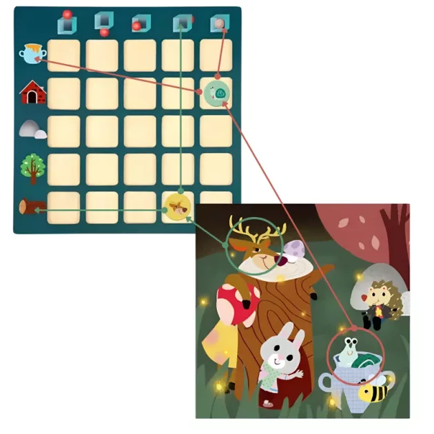 Inspira la curiosidad cada día mientras mantienes las mentes activas en interiores. Los niños disfrutan descubriendo animales siguiendo divertidas pistas en tarjetas juntos. Obsérvalos pensar, emparejar y reír mientras aumenta su confianza. Las piezas de madera duraderas garantizan un entretenimiento seguro y duradero para todos.