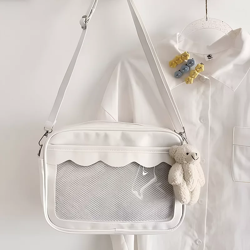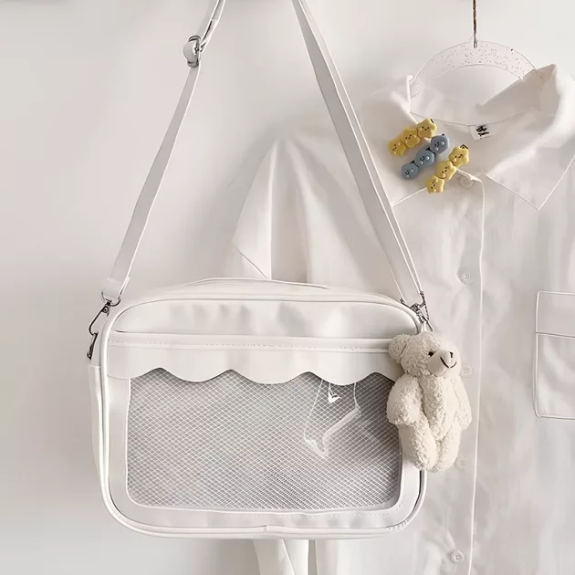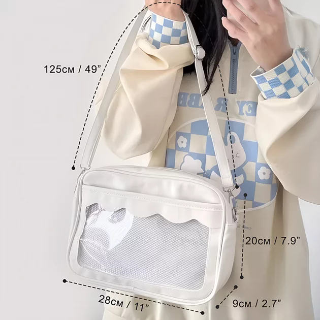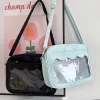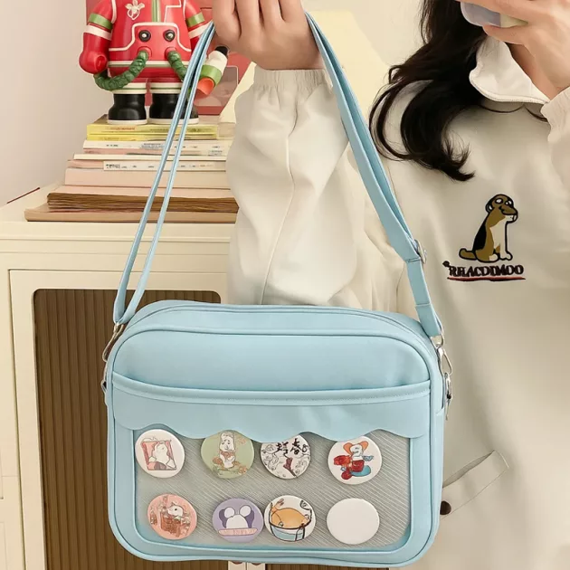 Decoré el bolsillo transparente con calcomanías. Se ve increíble y hace que la bolsa se sienta súper personal y divertida para usarla todos los días.