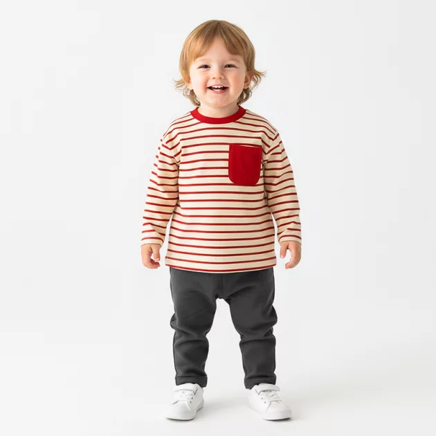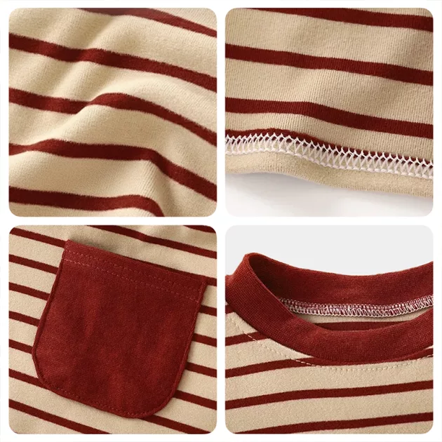 La camiseta de rayas es la favorita de mi hijo para jugar afuera. Lo mantiene abrigado y le encanta el bolsillo para sus juguetes pequeños.