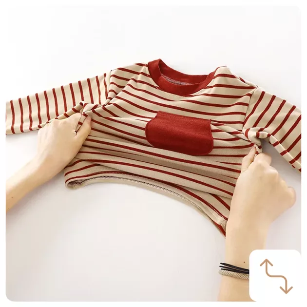Mi hija se pone la camiseta de rayas todas las mañanas. Se siente acogedora y cálida durante los días fríos. ¡Los bolsillos son geniales para sus pequeños tesoros!