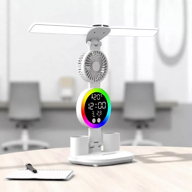 Mi escritorio nunca ha estado tan ordenado. La luz hace que leer libros sea mucho mejor, y el ventilador silencioso es genial cuando hace calor.