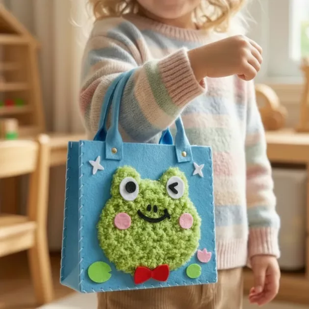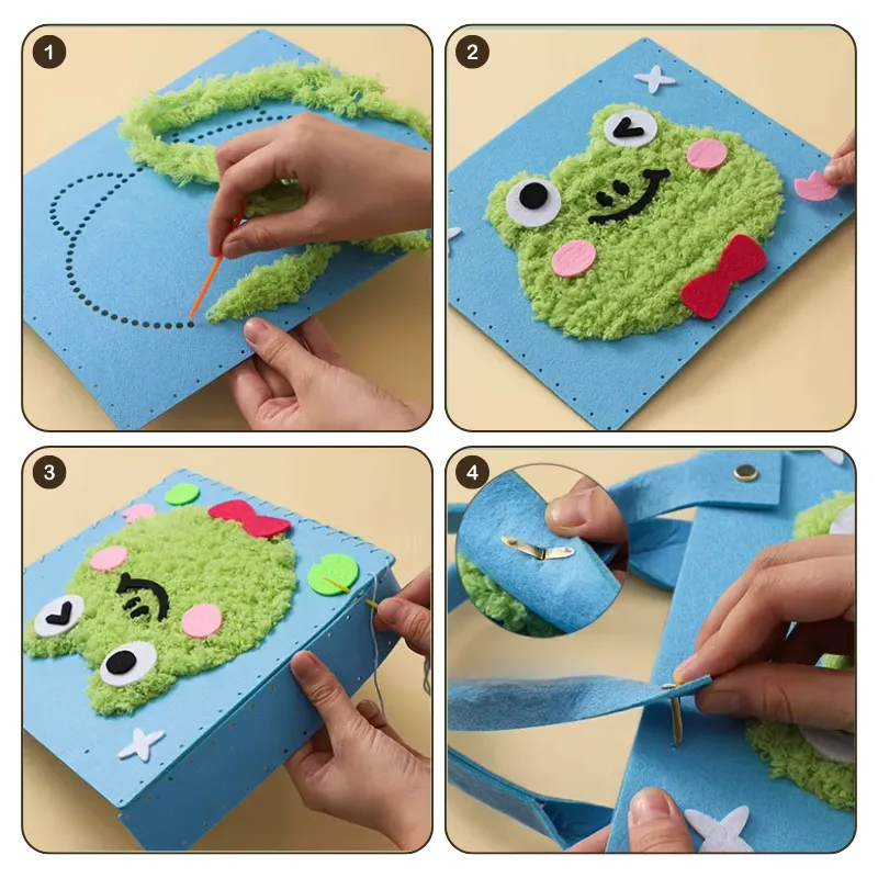 ¡A mi hijo le encanta su bolso hecho a mano! Las piezas de fieltro son suaves y fáciles de manejar. Realmente aumentó su confianza al terminarlo y usarlo por sí mismo.