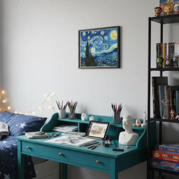 Sorprendí a mi hermano mayor con nuestra obra terminada. Nos divertimos mucho pegando gemas y viendo aparecer las estrellas. El kit es muy divertido.
