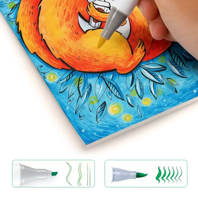 Estos marcadores son increíbles—mi cuaderno de bocetos está lleno de dibujos audaces y brillantes. Uso ambas puntas mucho y nunca traspasan la página.