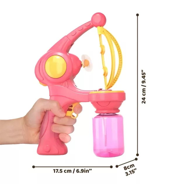 Esta pistola de burbujas fue la estrella en mi fiesta de cumpleaños. Todos querían jugar con ella porque hacía muchísimas burbujas muy rápido. ¡Super divertida!