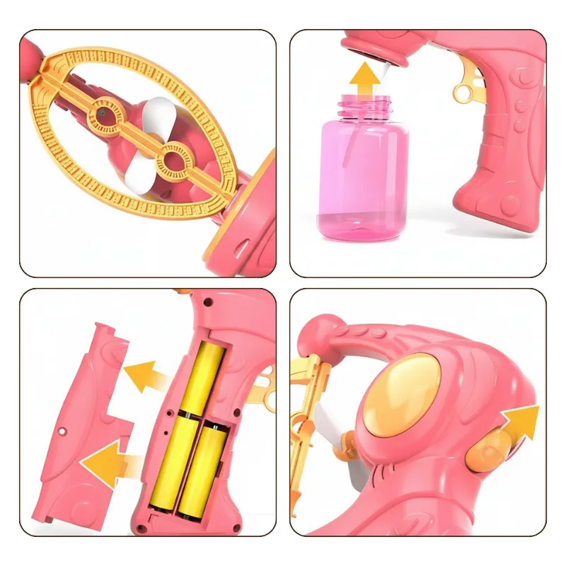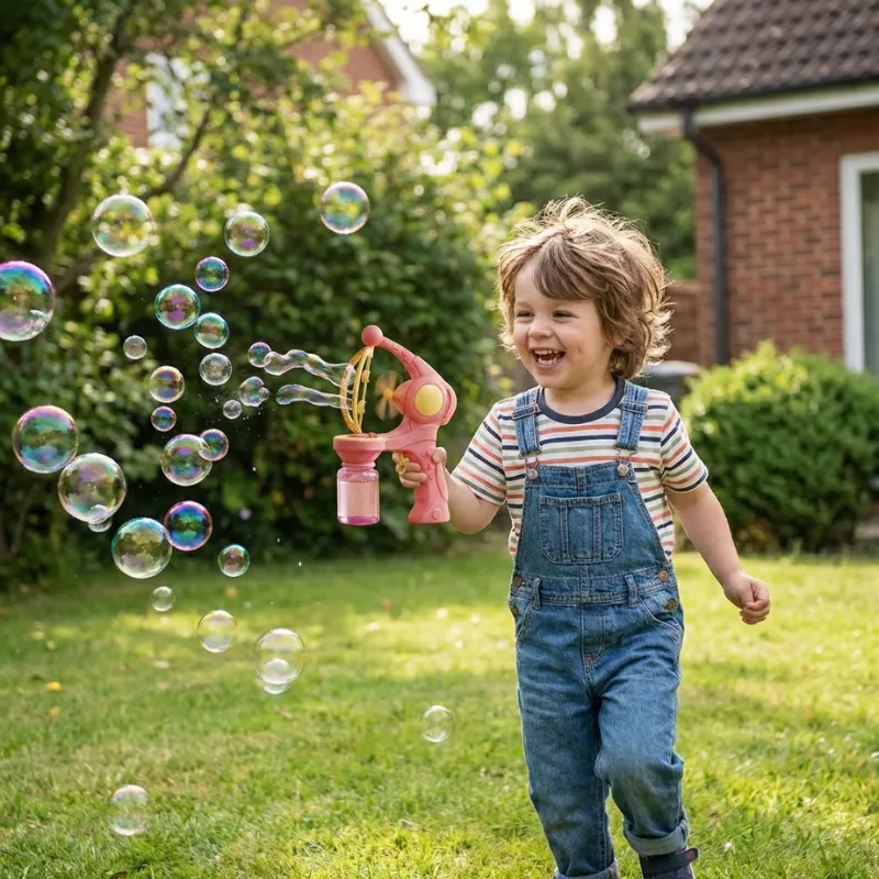 Mira cómo la carita de tu hijo se ilumina de alegría al instante. Esta fantástica pistola de burbujas llena cualquier día de risas y colores brillantes. Fácil de preparar y perfecta para manos pequeñas, mantiene a los niños entretenidos al aire libre. Crea momentos especiales juntos mientras fomentas la creatividad y el movimiento.
