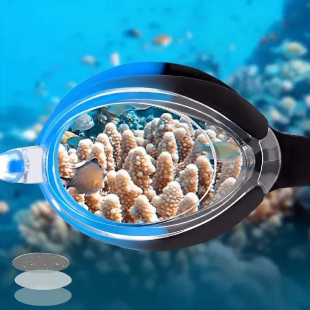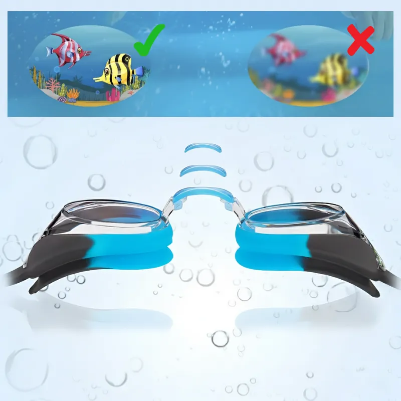 Visión Cristalina - Las lentes evitan el vaho y protegen contra la luz perjudicial. Tu hijo puede ver cada detalle mientras nada y disfrutar cada momento.