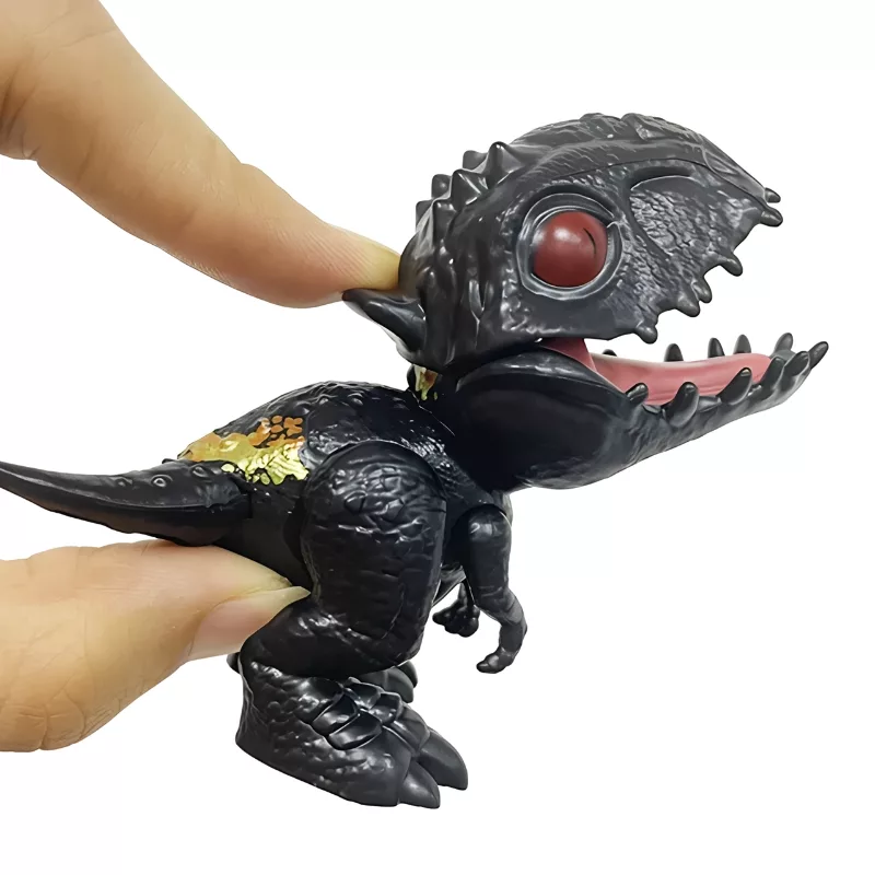 El dinosaurio encaja perfectamente en las pequeñas manos, y la acción de morder es simplemente hilarante.