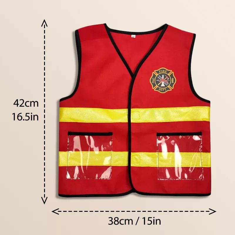 A mi hijo le encanta jugar a ser héroe ahora gracias a este increíble equipo de bombero. El casco le queda bien y el chaleco es muy fácil de poner.