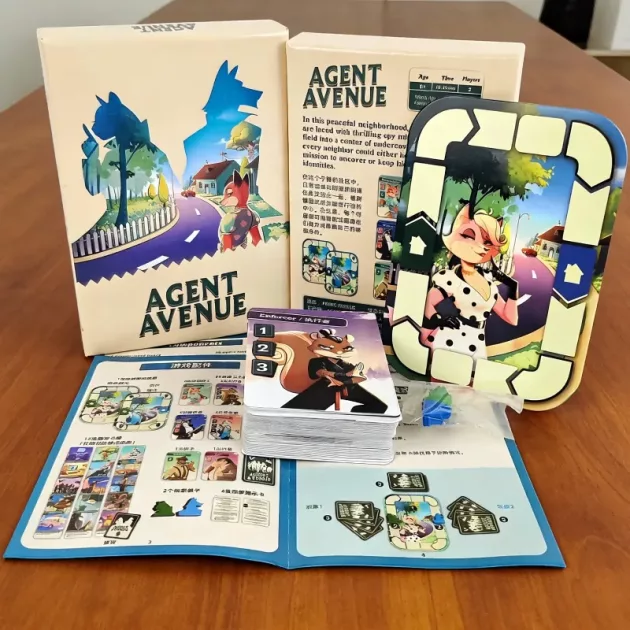Llevamos Agent Avenue a todas partes porque es compacto y resistente. Las cartas bilingües hacen que todos puedan jugar, incluso mis abuelos.