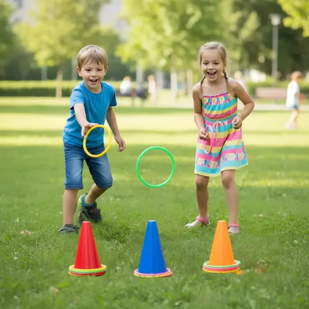 Uso el juego de lanzar aros para ayudar a mi hijo con la coordinación ojo-mano. Cada día mejora más. Una buena manera de jugar y aprender al mismo tiempo.