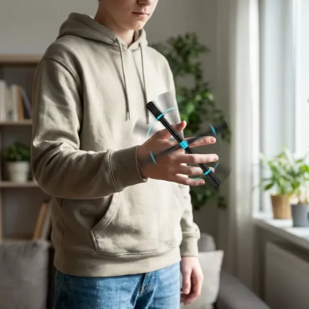 A veces me siento inquieto, pero girar este bolígrafo le da algo que hacer a mis manos. Es ideal para cuando me aburro o tengo que quedarme quieto.