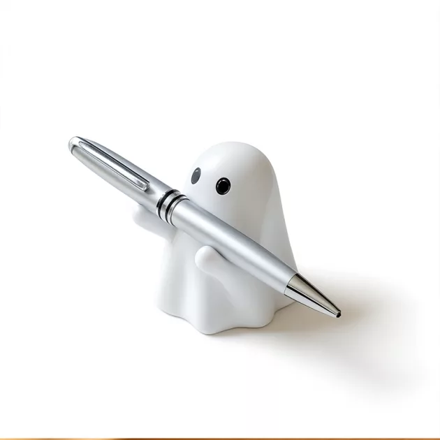 El fantasma sonriente me ayuda a mantener todos mis bolígrafos favoritos juntos en un solo lugar. Ya no se desordena mi cajón y se ve adorable.