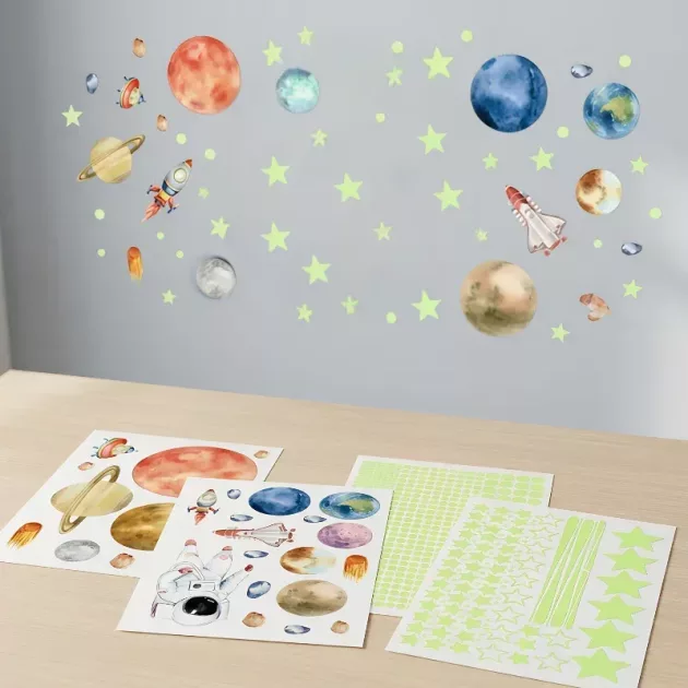 Estas pegatinas espaciales convirtieron la habitación de mi hija en una galaxia de fantasía. Le encanta el brillo.