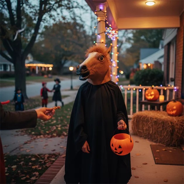 A los niños les encanta disfrazarse y mostrar su imaginación. El diseño único de cabeza de caballo lleva risas a cada evento. Fácil de usar, esta máscara es cómoda y ligera. El material de vinilo resistente asegura que se mantenga segura durante el juego.