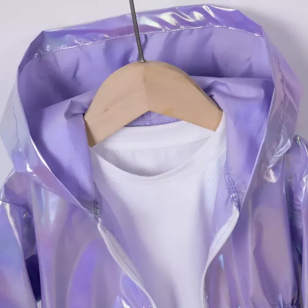 Chaqueta Impermeable Iridescente y Ligera, Fina, con Cremallera y Capucha para Niños