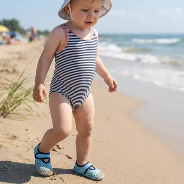 Dejo estos zapatos de playa en el coche para las paradas sorpresa en el parque. Son fáciles de poner, la correa se siente suave y los lados aireados evitan que sus piecitos se sobrecalienten.