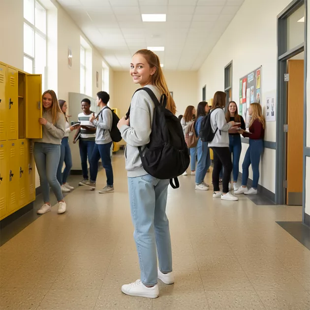 Mi mochila escolar cabe todo lo que necesito para clases y actividades extracurriculares. Los hombros se sienten bien todo el día.