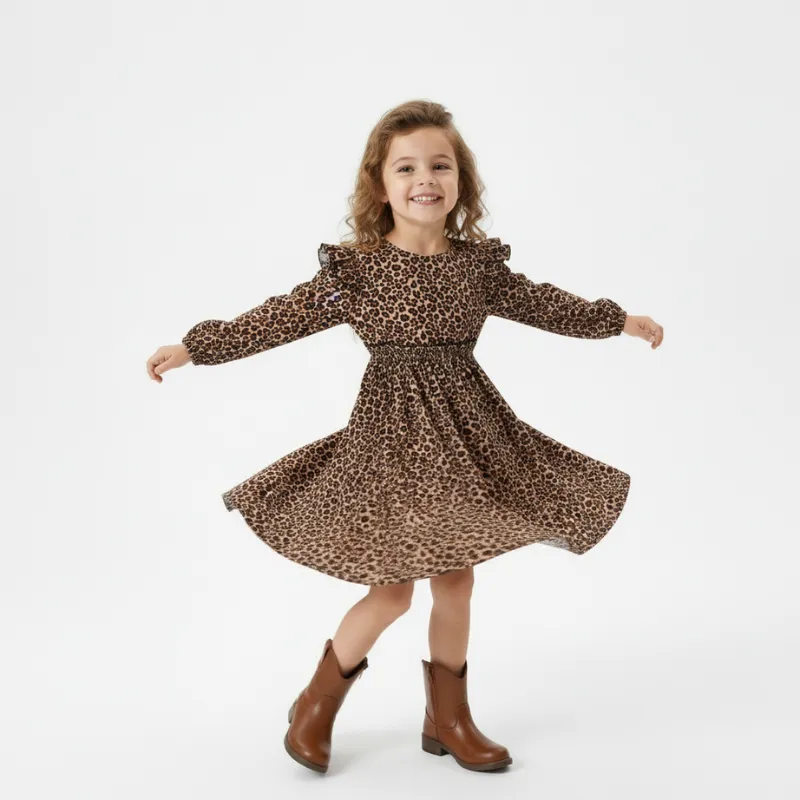 ¡A mi hija le encanta este vestido de leopardo! Da vueltas encantada y es muy fácil de lavar después de las citas de juegos. El estampado brillante la hace sonreír todos los días.