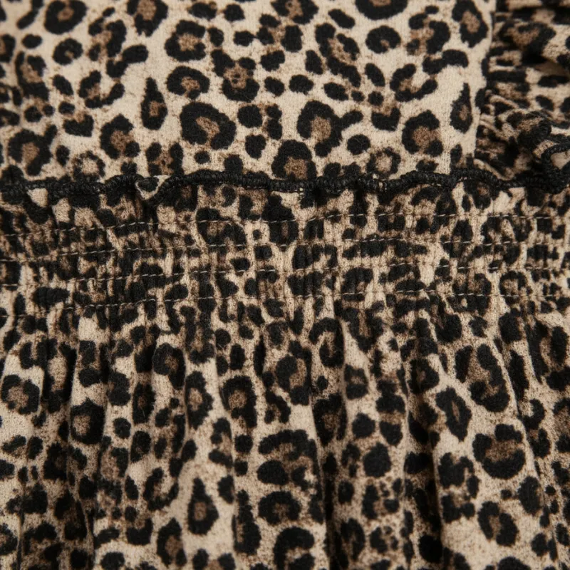 Cómodo y práctico a la vez. Mi pequeña incluso duerme la siesta en su vestido de leopardo porque es muy acogedor. El estampado y los volantes lo hacen especial.