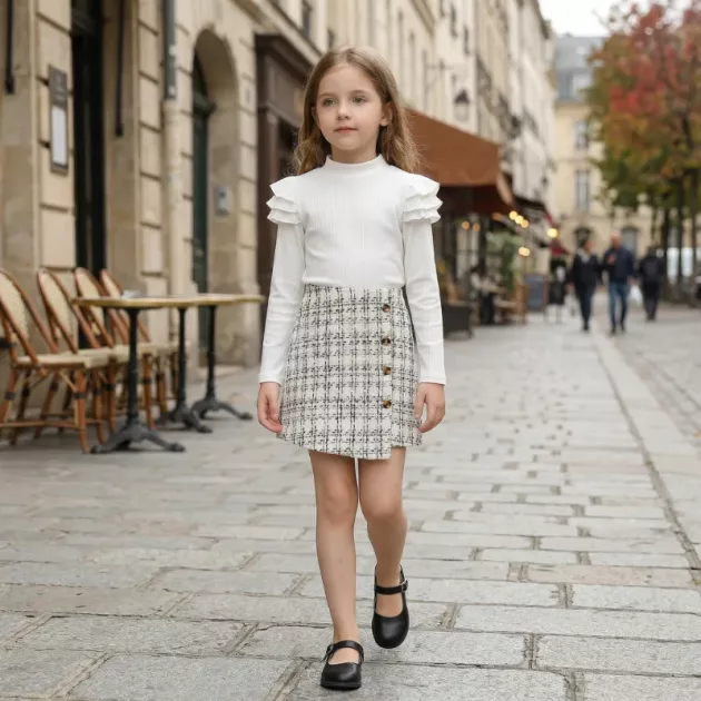 Liviano y totalmente cómodo para mi hija. ¡La falda de cuadros añade un detalle encantador a su rotación de conjuntos!