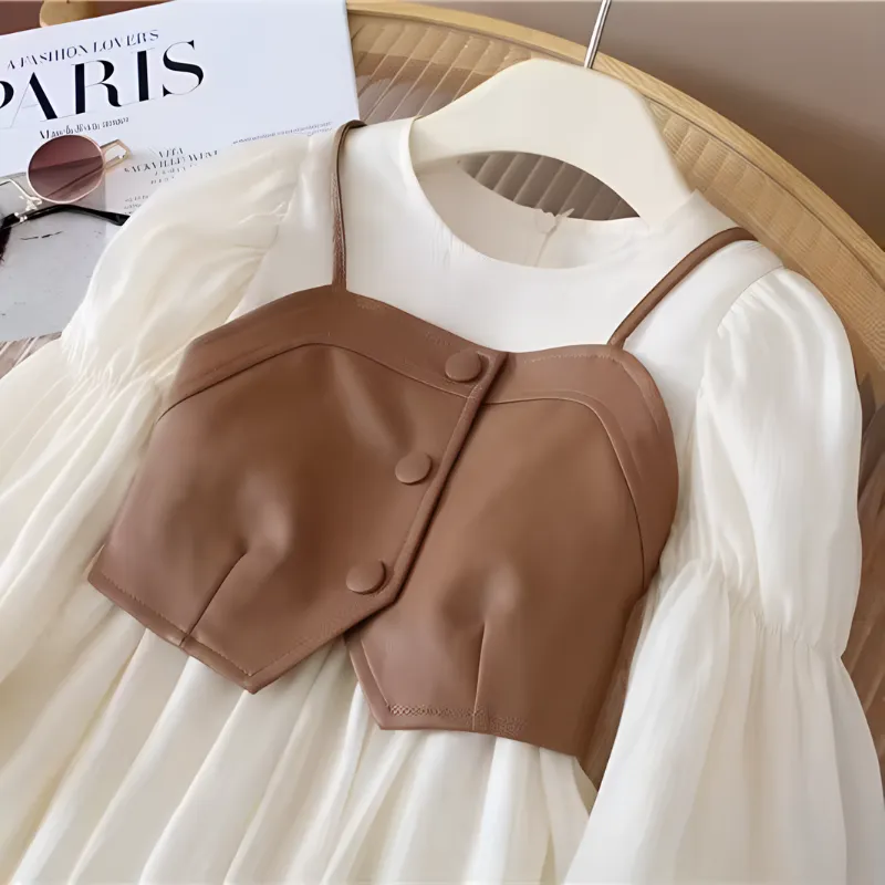 Encantadora Versatilidad - Colores clásicos ideales para fiestas, parque o reuniones familiares. El diseño único del vestido con chaleco combina fácilmente con cualquier accesorio.