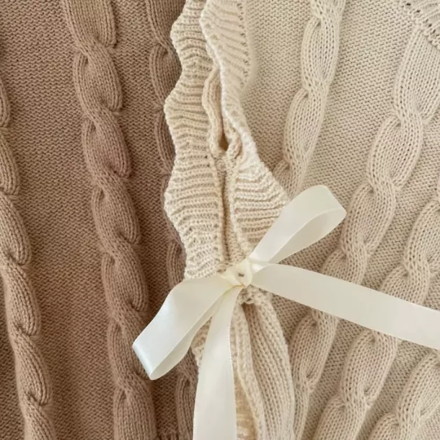 Me gusta lo suave que se siente este chaleco en el cuello y los brazos de mi hija. No hay partes que piquen y el diseño de ochos hace que incluso unos leggings sencillos se vean arreglados.