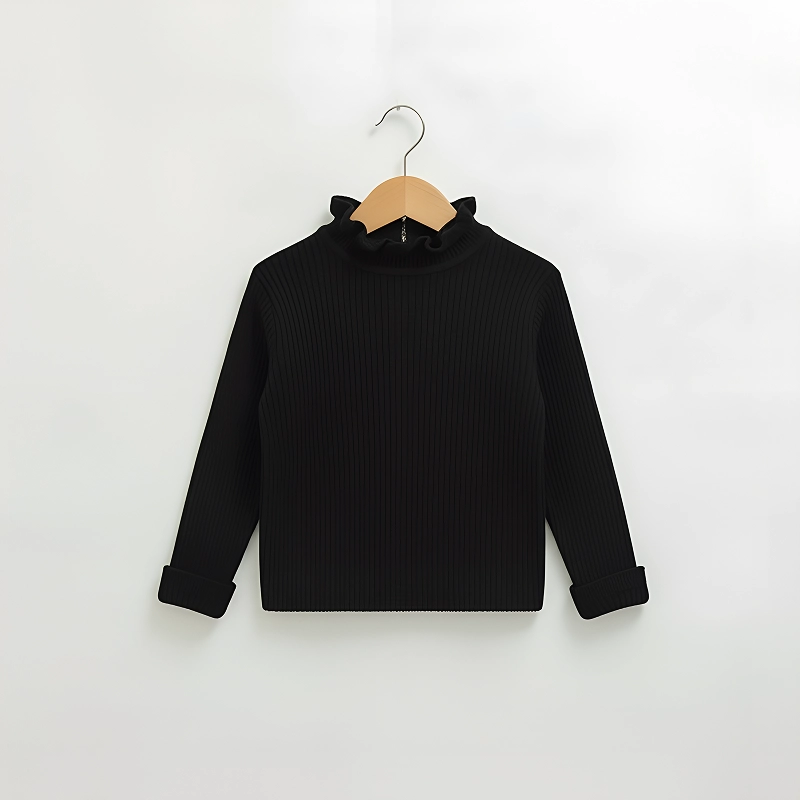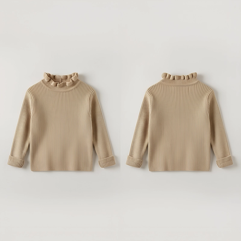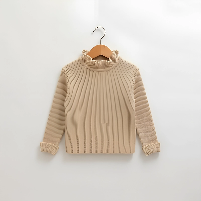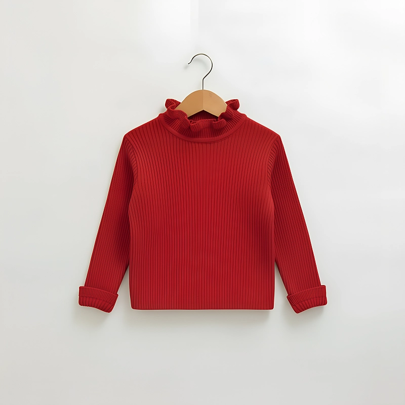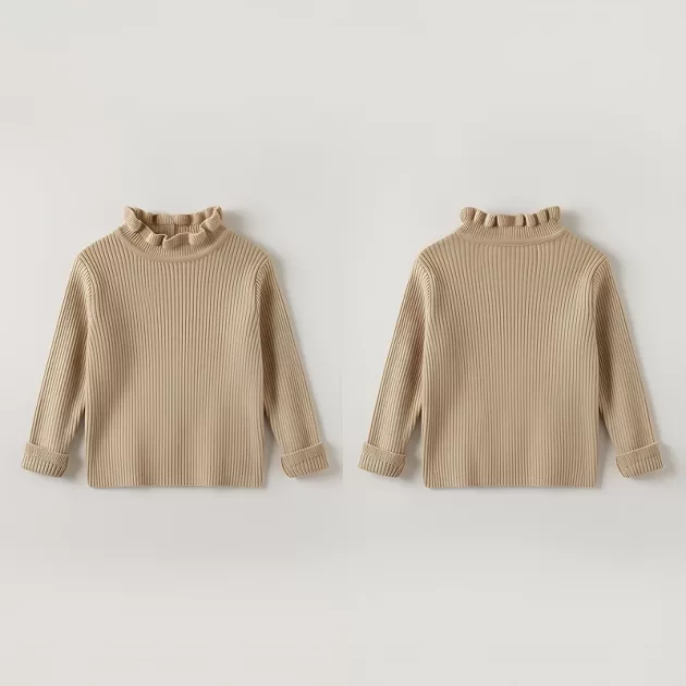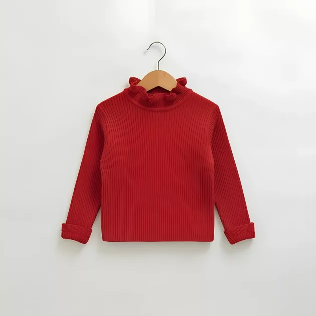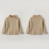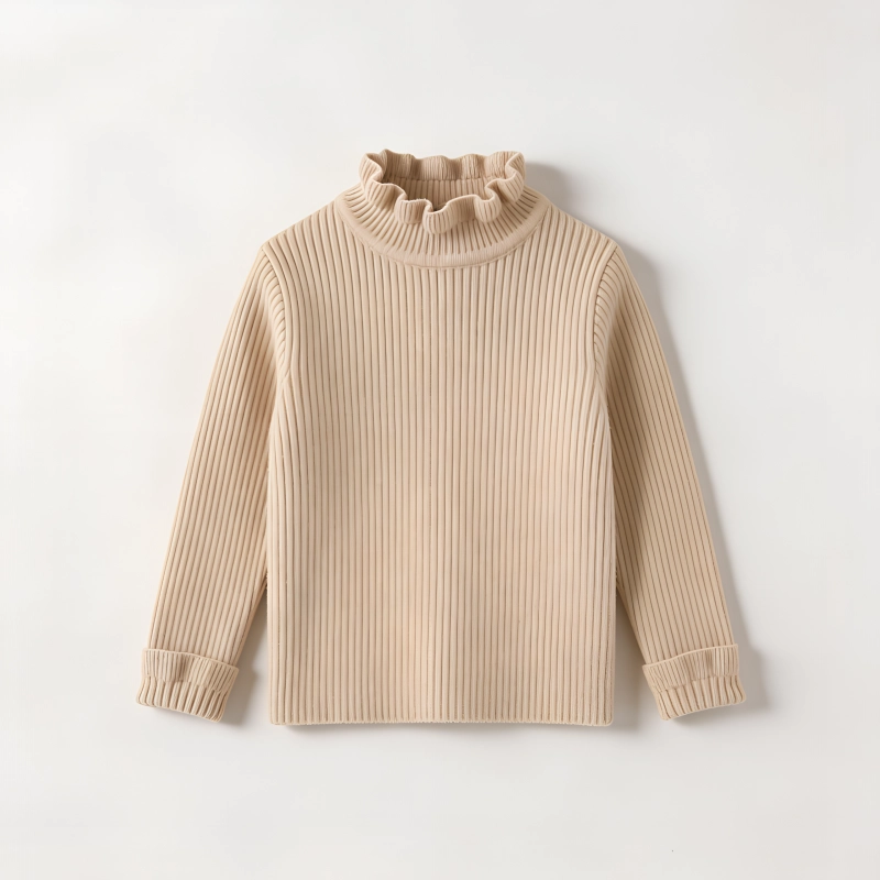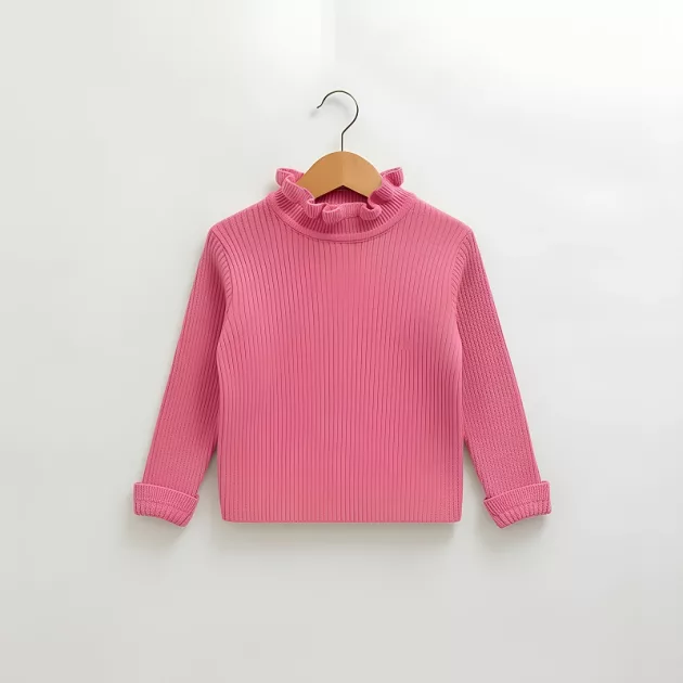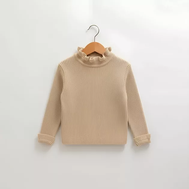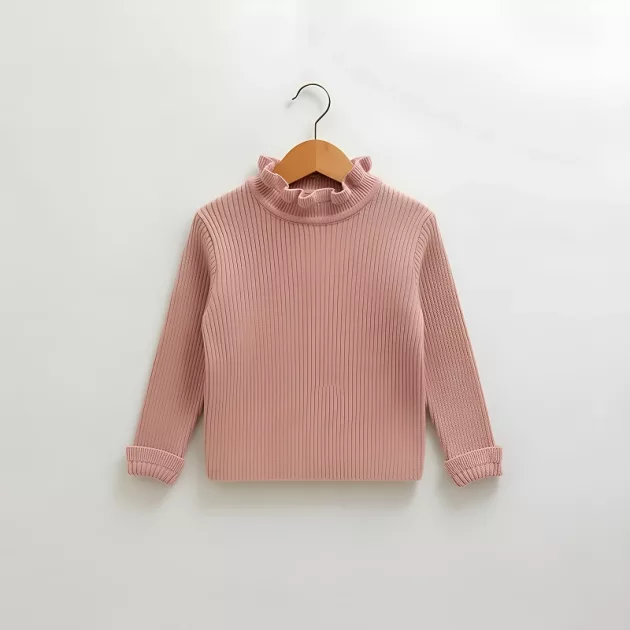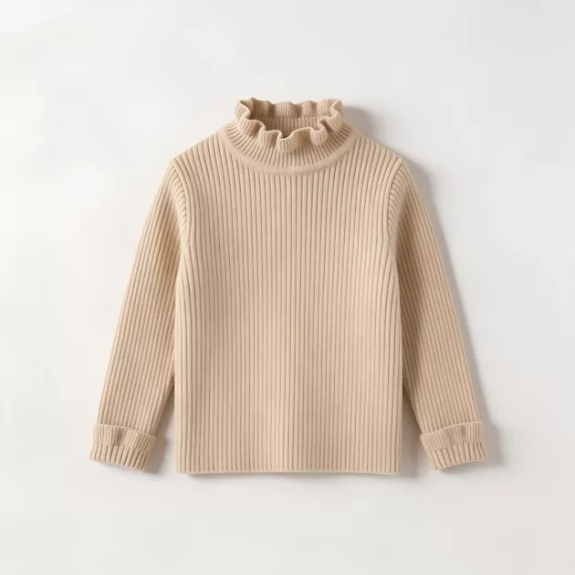 Precioso suéter de punto cuello alto, cálido y suave de algodón de manga larga para niños