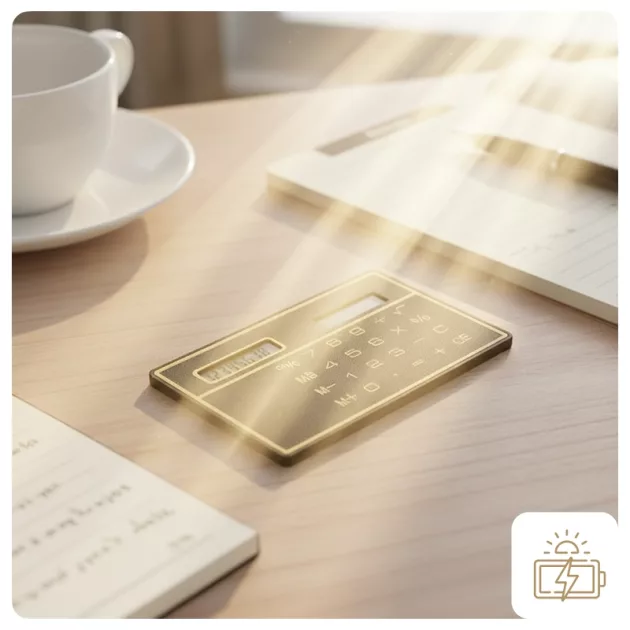 Esta calculadora es muy práctica. Cabe en cualquier bolso, no ocupa espacio y funciona en cuanto le da cualquier luz.