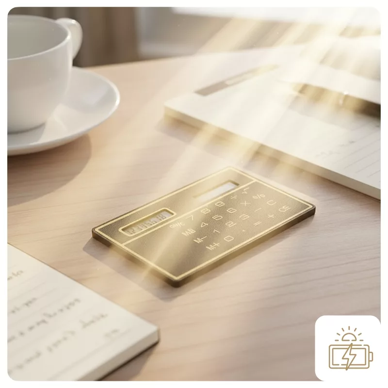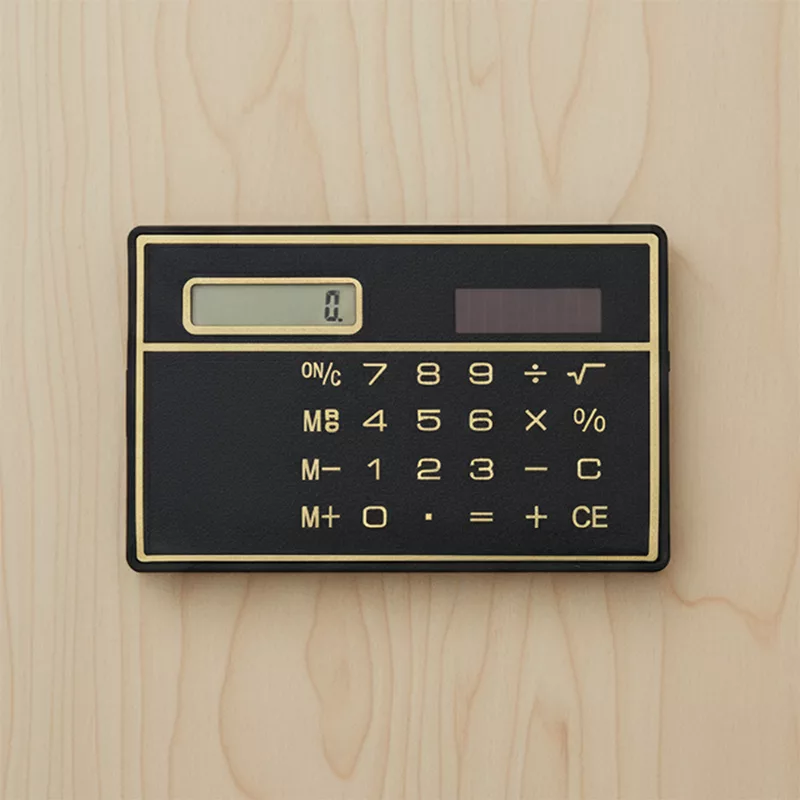 Esta calculadora es muy práctica. Cabe en cualquier bolso, no ocupa espacio y funciona en cuanto le da cualquier luz.