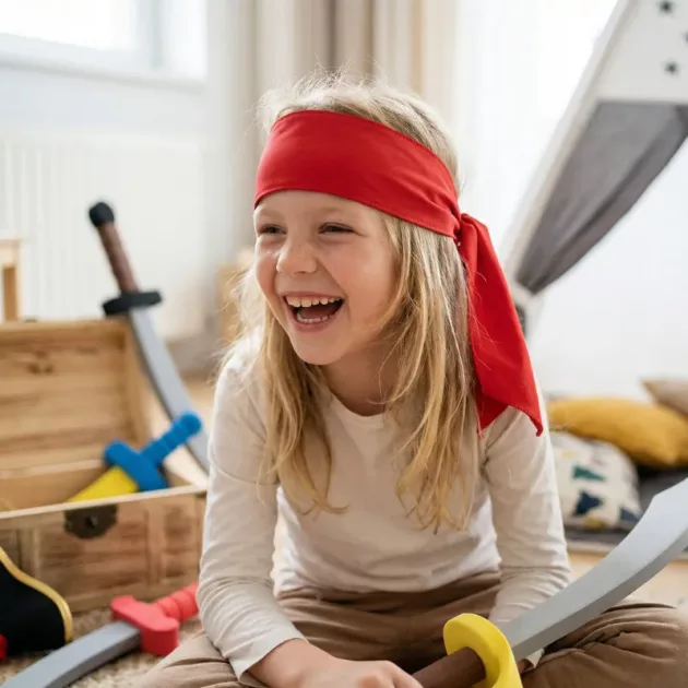 Mi sobrino tímido salió de su caparazón en cuanto se puso el sombrero de pirata. Empezó a gritar frases piratas graciosas y a mandarnos como un pequeño capitán.
