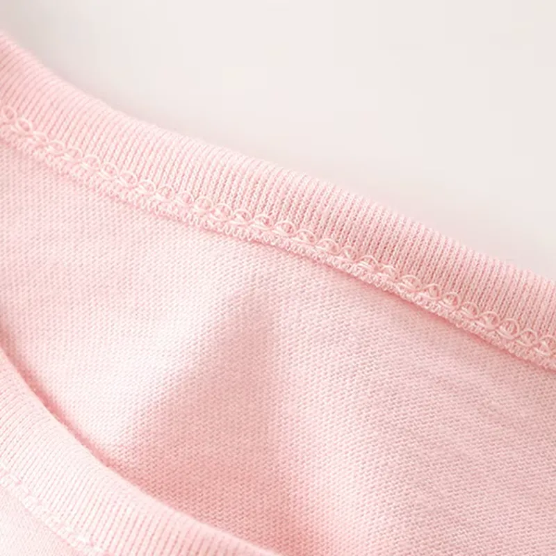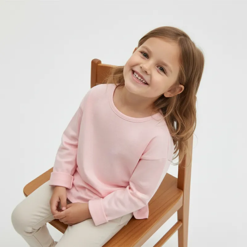 ¡Buena camiseta lisa! Mi hija dice que nunca le raspa y que puede moverse fácilmente cuando juega a la mancha en el parque.